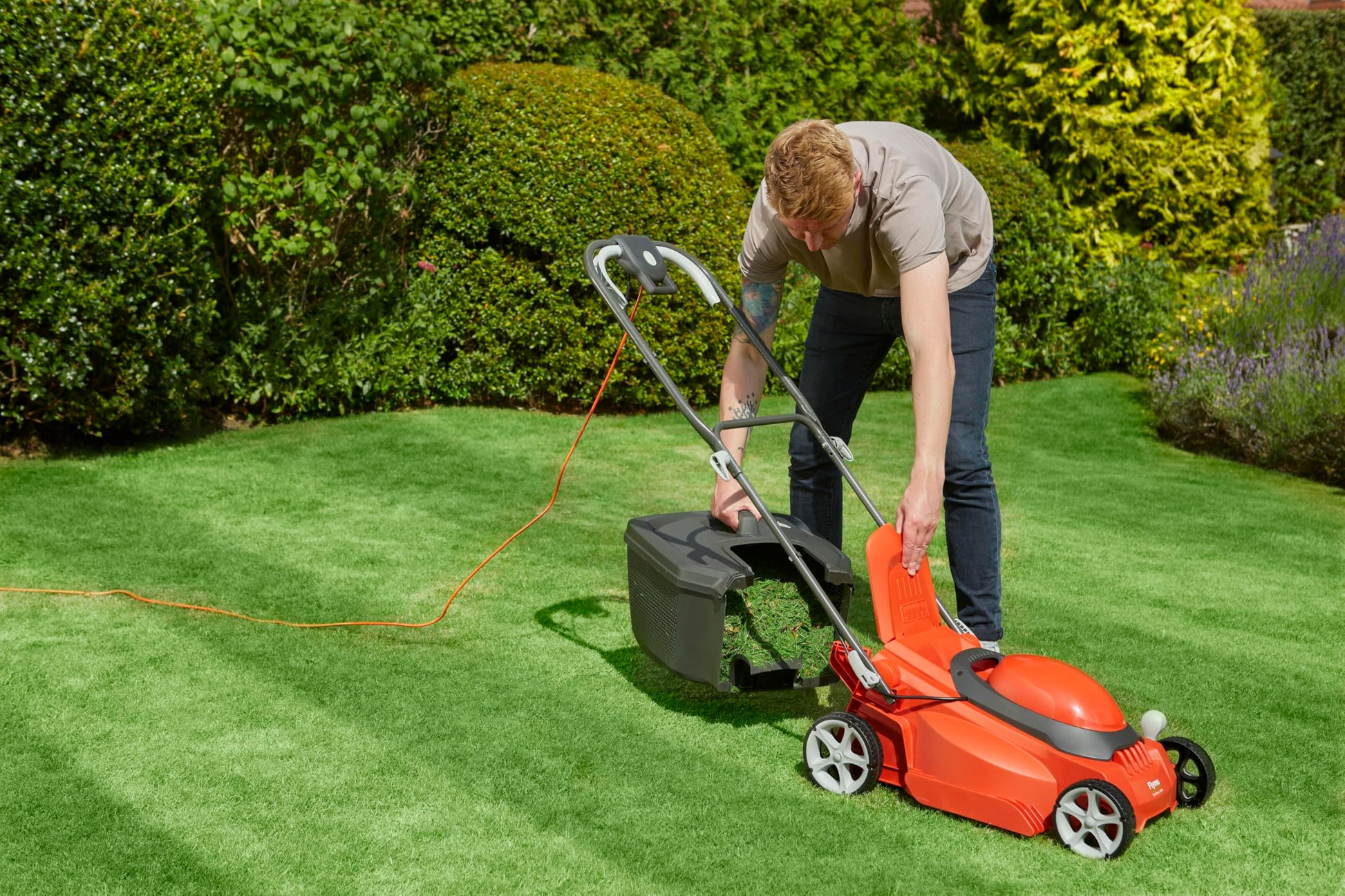 This electric rotary lawn mower is designed for efficient maintenance of small to medium-sized gardens, featuring a powerful 1600W motor that delivers reliable cutting performance with ease. The 38cm cutting width allows for faster coverage, while the adjustable cutting height range of 20–60mm ensures a precise and well-maintained lawn finish tailored to your needs. A large 45L grass collection box reduces the need for frequent emptying and includes a fill indicator for added convenience. The mower is equipped with close-edge cutting capability to easily trim along borders and flowerbeds, as well as a rear roller that creates a clean striped effect on your lawn. Designed for comfort and usability, it features dual lever handles suitable for both left- and right-handed operation, a lightweight structure, and an integrated carry handle for easy transport. The 10-meter power cable provides extended reach across your garden, while the foldable, space-saving design allows for convenient vertical storage when not in use, making it a practical and user-friendly solution for regular lawn care.